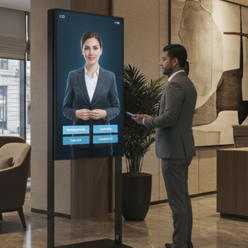 Static screens don’t engage. Human staffing is expensive and not scalable. Existing AI assistants are limited to screens and browsers, disconnected from the physical world.